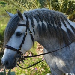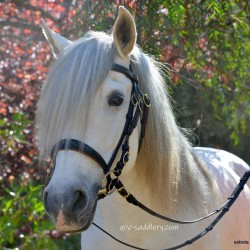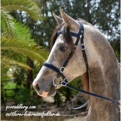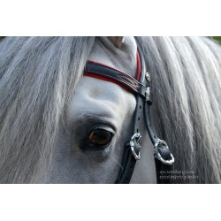 Headband and noseband are padded and underlaid, on the noseband is a decorative stitching. The leather reins are inclusive. As with all our handmade leather items, they have an extensive buckle and leather selection. You can also specify the color selection for seams and padding. Please indicate dimensions in the dimension sheet